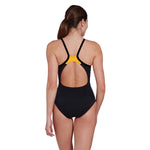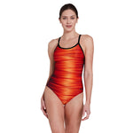 Make every session a standout with Zoggs Pipeline Strikeback! This eye-catching suit features a bold orange stripe design with contrasting black straps and back.
