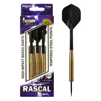 A sleek, classic look for the Formula Sports Rascal Brass Dart. This accurately balanced high impact brass dart is fitted with tempered steel points and includes high performance 100 micron flights and nylon shafts. The simple black and gold design shows an understated elegance that is great to customise your darts accessories without distracting you from the game.