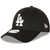 Los Angeles Dodgers 9FORTY cap features a black crown with a raised Los Angeles Dodgers logo embroidered in white on the front. The cap also has an adjustable cloth strap with metal buckle at the back.