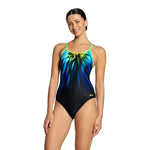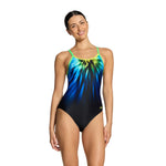 Make every session a standout with Zoggs Octane Strikeback! This eye-catching suit features bold blue flashes creating a dynamic and striking design with contrasting green straps and a black back.