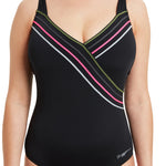 Look and feel great in our Suffolk Concealed Underwire One Piece. This striking navy swimsuit features flattering diagonal stripes, easy scoopback styling and the added benefit of underwire for maximum support in the pool. Fits D and E cups. Concealed underwire - Fits D and E cups Shelf bra for added support Supportive wide straps Classic scoopback Medium leg height100% chlorine proof, quick drying fabric with UPF50+ sun protection4X greater fabric compression than traditional generic swimwear fabrics Model is 5'7 and wears a Size 10Made with Ecolast+™ fabric that features REPREVE® yarn made from recycled post consumer plastic bottles to help protect our environment for future generations and it's 100% chlorine proof and comes with our Lifetime Guarantee.55% Recycled Polyester 45% Polyester P.B.T