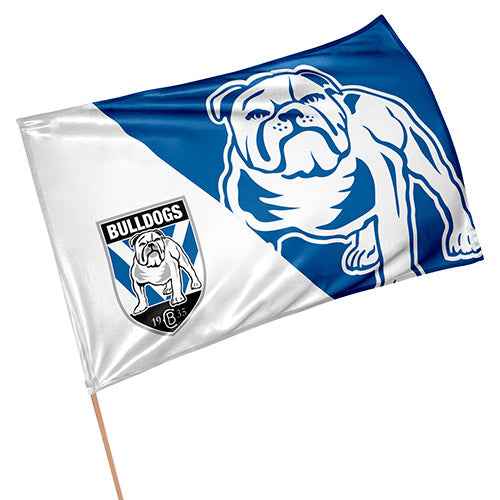 Bulldogs NRL Game Day flagSingle side screen print110g knitted Polyester60x90cmFlag supplied with 1m wooden pole (1cm in diameter)Official NRL Merchandise