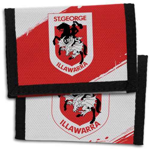 Sublimated Print with team colours and logo. Nylon Wallet with 'hook and loop' Fastener Closure. NRL Official Merchandise. *one wallet only, image is to show both sides of print*