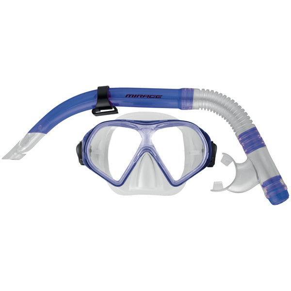 Hi grade Clear silicone skirt for custom fit Twin Tempered Glass lenses Transparent Dark Blue Frame and Blue Snorkel Splash guard and purge valve in fall away style snorkel