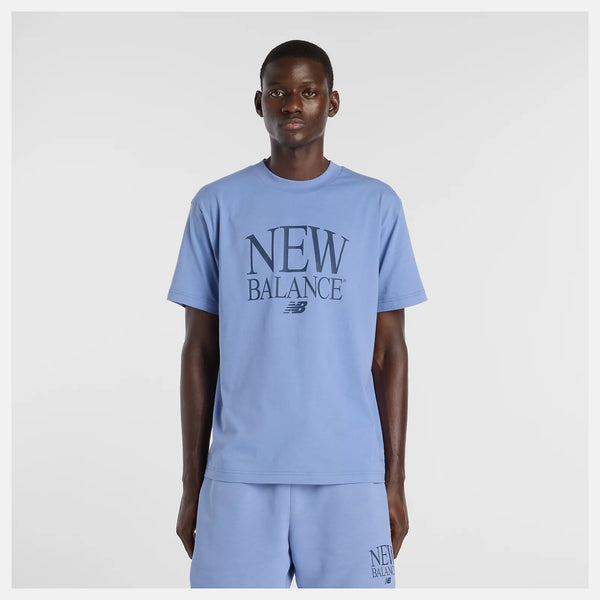 New Balance Reimagined Graphic T-Shirt. Mens. fairweather blue New Balance Reimagined Graphic T-Shirt. Mens. fairweather blue This soft cotton t-shirt features classic New Balance branding for everyday style. Features Short...