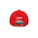 New York Yankees 9FORTY Adjustable Cloth Strap with Metal Buckle Closure Scarlet Red Crown and Undervisor Raised New York Yankees Logo Embroidery in White Made of 100% Cotton Woven