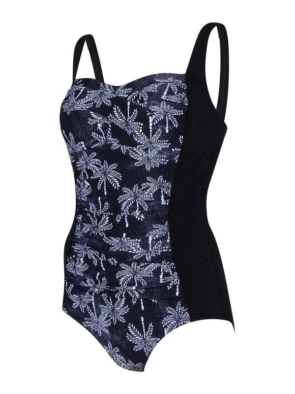 This swimsuit features a figure-flattering gathered fabric front and full foam cups for added support. The adjustable straps and low leg height ensure a comfortable fit, while the stunning palm tree pattern gives an elegant feel to this classic style suit.