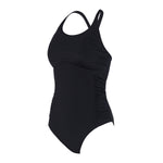 New style! Wear the new Multiway 1 Piece your way. This new style has secure adjustable straps that can be worn either straight or crossed over - perfect for sports or leisure. With side ruching, medium leg height and full front lining, this suit is designed to flatter your silhouette. Full foam bra cups provide a great bustline shape and support. This style features a double-layer shelf bra with side opening pockets making this suit suitable for inserting mastectomy prostheses.